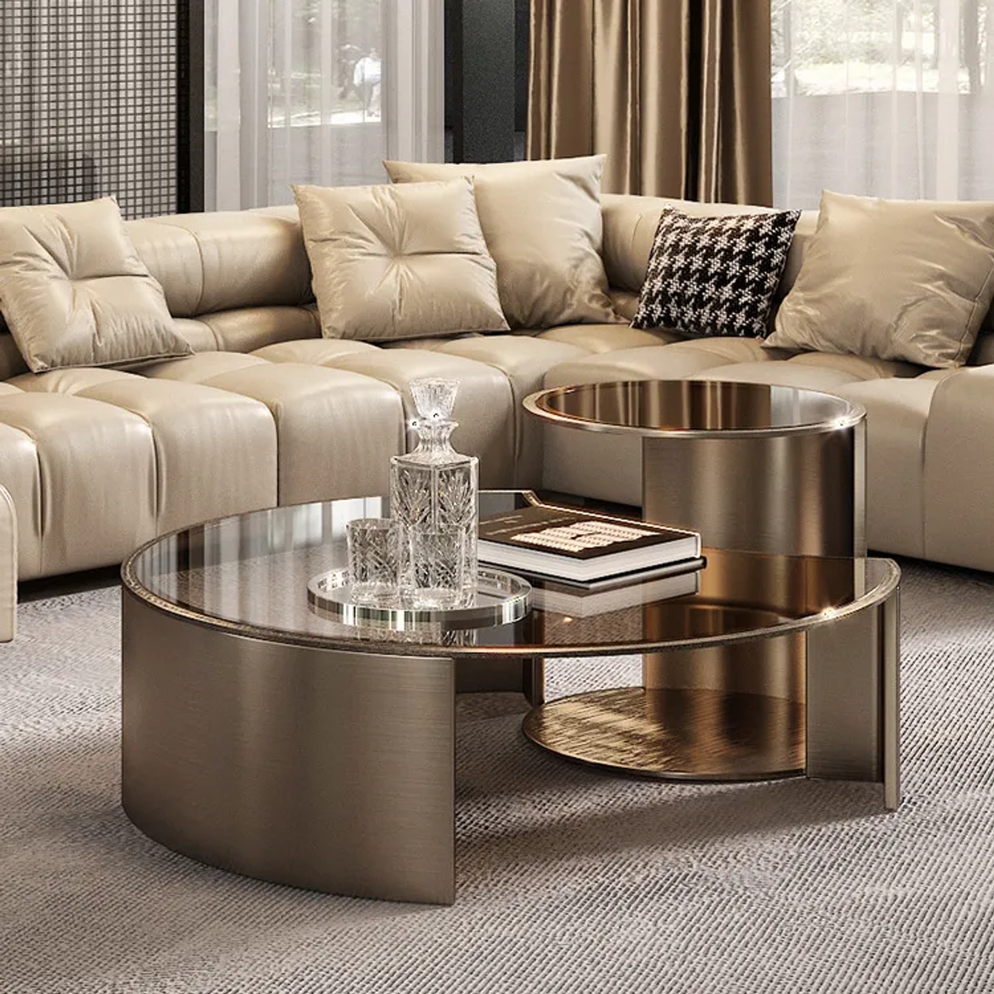 Add timeless elegance to your living space with this stainless steel coffee table set, featuring glass tops and a refined antique finish. Crafted from durable steel, this set includes a large coffee table and a compact side table that can be styled together or separately. The blend of antique metal tones and clear glass creates a sophisticated look perfect for classic and modern interiors alike.