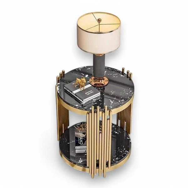 Enhance your interiors with the Modanio Aurix Modern Side Table, crafted from premium stainless steel and topped with elegant marble. Finished in a sophisticated gold and black combination, this table brings contemporary luxury and timeless durability to modern living spaces.