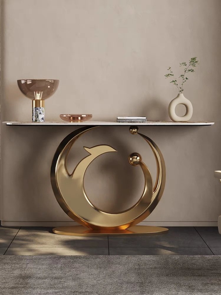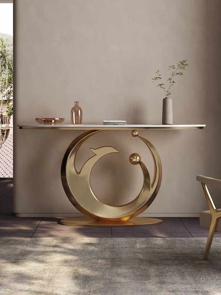The Fish Style Console Table is a premium statement piece that blends artistic design with modern luxury. Crafted with a high-quality stainless steel (SS) frame and topped with natural marble, this console table features a distinctive fish-inspired silhouette that elevates contemporary interiors. Finished with a durable PVD coating, it offers long-lasting shine and elegance. Proudly made in India, this console table is fully customizable in size and finish to suit your décor preferences.